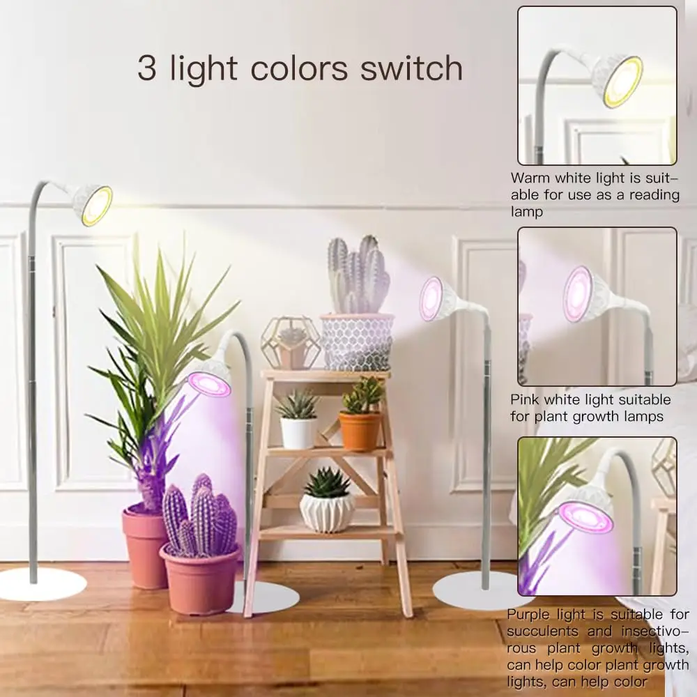 Grow Light Stand For Indoor Plants 16 Leds Full Spectrum Desk Growth Lamp With Timer 8h 12h 16h Height Adjustable 34 55cm
